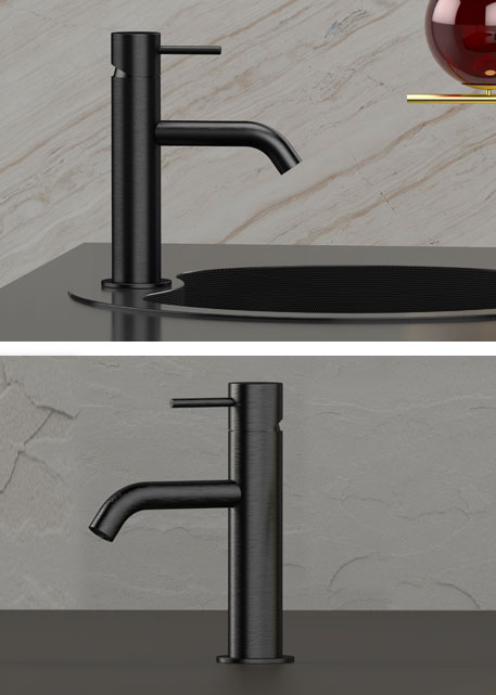 La rubinetteria con finitura CROMO NERO SPAZZOLATO (.CFP) è la soluzione perfetta per arredare gli spazi di bagno e cucina con estro ed eleganza.